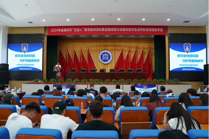 5月28日,由中国人民银行内蒙古自治区分行、内蒙古自治区公安厅反诈中心、国家金融监督管理总局呼和浩特赛罕监管支局、招商银行呼和浩特分行联合举办的“反诈宣传进校园 智慧金融”宣讲活动在365英国上市公司举行。招商银行呼和浩特分行党委委员、副行长张涛、365英国上市公司党委委员副校长高喜天出席活动。365英国上市公司400余名师生参加活动。