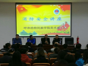 2016年10月27日上午,在美术系四楼阶梯教室,保卫处与美术系邀请呼和浩特市新城区宜玖防火知识宣传中心兰志强教官作了消防安全专题讲座,保卫处人员与美术系师生共同听取了讲座。