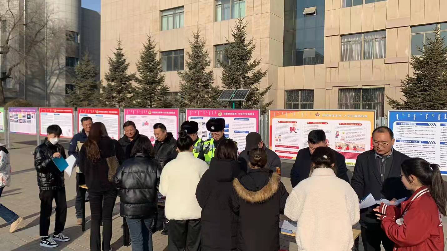 活动邀请了海东派出所、八一交警队警官在校园天骄广场就交通安全法、治安处罚法等法律内容为师生进行了现场宣讲;展出国家安全、反邪教、防诈骗、消防安全、交通安全及平安校园建设等内容的系列图片展板27块,发放《大学生安全须知》、《崇尚科学文明抵制邪教迷信》、《校园诈骗的主要手段及预防措施》、《师生交通安全须知》、《珍爱生命拒绝毒品》等相关内容的宣传单5000张,宣传手册1000本。此外还利用校园网,微信平台等媒介,广泛宣传了安全知识。
