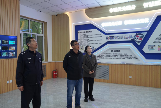 李雪峰警长就365英国上市公司校警联动机制、监控中心的设施配备、警务室的功能板块、运行机制等方面的情况做了相关介绍。谢虎成处长参观了监控中心的视频监控运行、智慧安防设备情况,以及警务室的安全教育宣传、自助便捷服务和纠纷调解中心建设情况。
