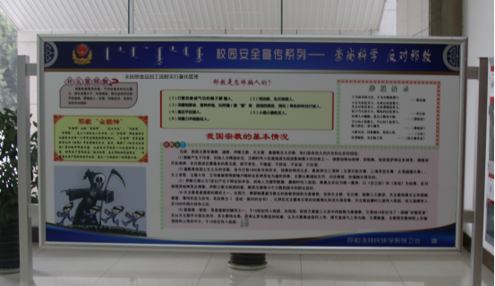 活动邀请安全厅骆处长在图书馆一楼报告厅为220名师生就国家安全法、公民如何维护国家安全等内容进行授课;展出国家安全、反邪教、防黄赌毒等为内容的平安校园系列图片展板,发放《大学生安全须知》、《崇尚科学文明抵制邪教迷信》《珍爱生命拒绝毒品》等内容的宣传单2000张,手册1000本,并利用条幅、校园网,微信平台等媒介,广泛宣传了安全防范知识。
