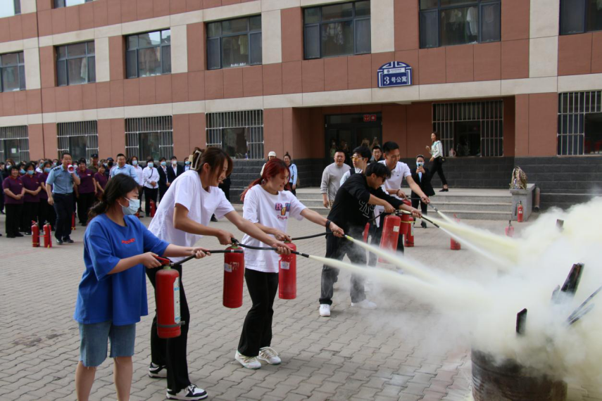 为了增强师生的消防安全意识,提高师生的逃生应急能力,切实加强学院密集场所的安全管理。2023年5月18日下午,保卫处联合内蒙古消防安全协会开展消防知识培训和应急演练,共550名师生员工参加。