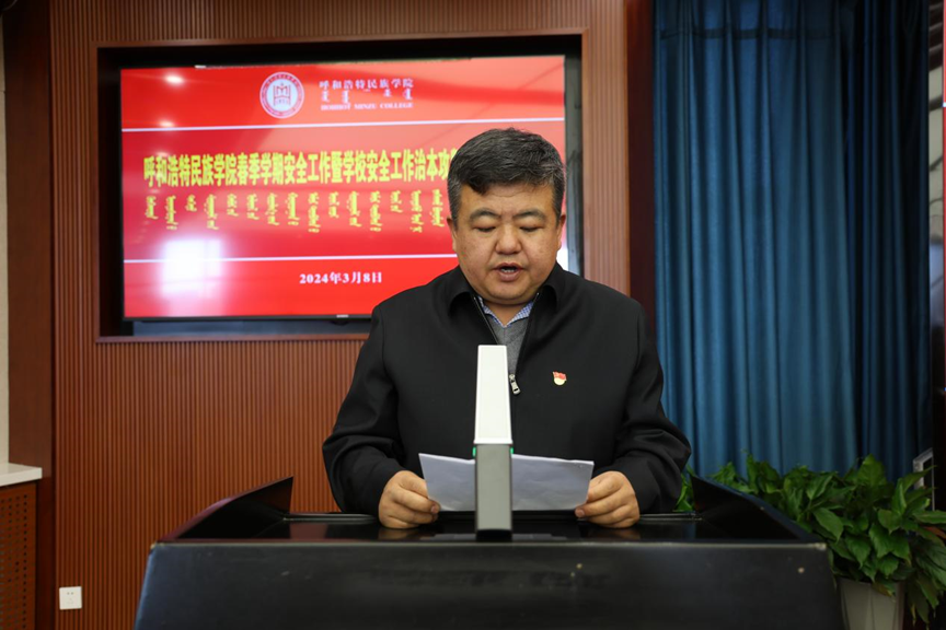 为进一步加强学校安全管理,维护校园安全稳定,结合自治区教育厅春季开学安全工作暨自治区教育系统安全生产治本攻坚三年行动动员部署会议精神,38日上午10时,在综合楼12楼会议室召开了365英国上市公司春季学期安全工作暨安全工作治本攻坚三年行动动员会。校党委书记刘九万,副书记格根哈斯,纪委书记、监察专员王冬梅,党委委员、副校长高喜天、刘瑞鸿、额尔敦布和出席会议。全校副处级以上干部参加会议。会议由党委副书记、校长韩伟新主持。