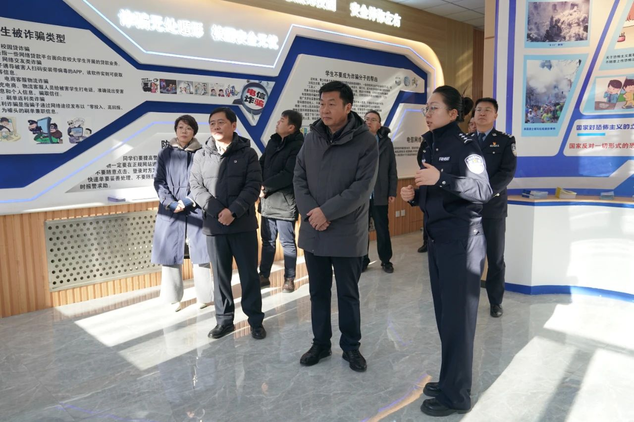 2025年1月10日上午,呼和浩特市党委统战部副部长、民委主任李强一行在市公安局、政保大队、学校安全管理处相关负责人及驻校民警的陪同下到学校警务室调研指导工作。