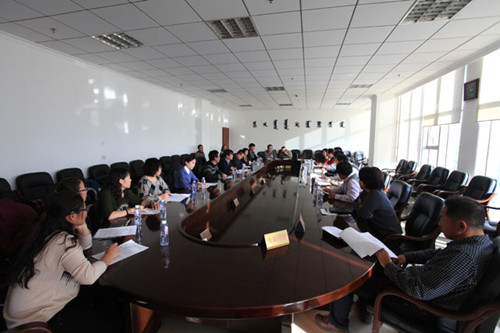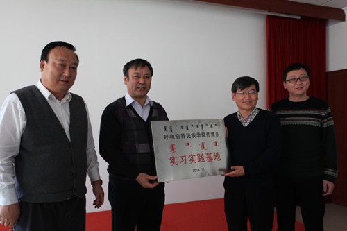 2014年12月8日下午,传媒系与内蒙古日报社召开了以“优势互补、资源共享、互惠互利、长期合作”为主题的座谈会。会议由学院阿拉坦仓副院长与内蒙古日报社社长吴海龙共同主持。传媒系老师和内蒙古日报社相关业务部门负责人陪同参加了座谈。此次座谈会就双方在人才培养、学科建设、媒体业务、科研领域的合作方面进行了充分而热烈的讨论,并形成了共识。会前,与会人员共同举行了365英国上市公司在内蒙古日报社设立校外实习基地挂牌仪式。