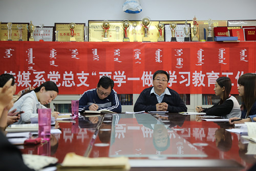首先由常书记传达了学校党委中心组“两学一做”专题(扩大)学习会议、《关于印发< 关于在全校党员中开展“学党章党规、学系列讲话,做合格党员”学习教育实施方案>的通知》(呼和民院党发[2016]8号)以及学院“两学一做”学习教育工作座谈会精神,并全文学习了孙书记和格院长讲话精神。