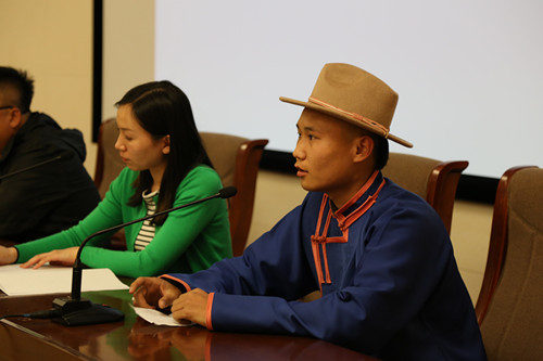 齐丹老师宣读了《传媒系征兵工作领导小组名单》及《传媒系大学生心理健康工作领导小组名单》。已经报名参加今年征兵项目的2015级新闻学班特日格乐同学宣读了“征兵入伍 报效祖国”主题倡议书;2014级摄影班大学生士兵孟根乌那嘎同学进行了主题为“当兵光荣”的演讲,分享了入伍故事和心得体会。