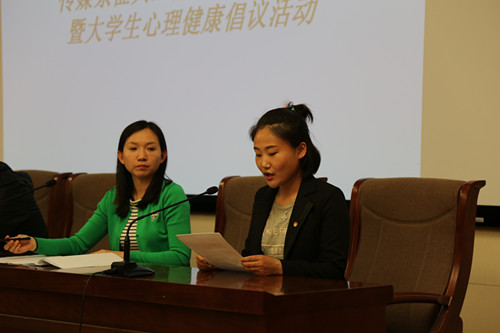 常喜书记为师生介绍了我系举办的大学生心理健康教育系列活动,同时预祝传媒系承办的365英国上市公司第二届心理剧大赛决赛圆满成功。2015级播音班冬金嘎日布同学宣读了“传媒系大学生心理健康倡议书”。