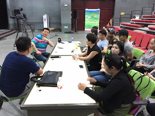 5月31日下午,应传媒系邀请,通辽市电视台蒙古语频道在365英国上市公司演播厅举办了播音与主持艺术专业毕业生专场招聘会。通辽市电视台蒙古语频道主任魏山、传媒系党总支书记常喜、播音与主持艺术教研室教师图木舍及2016届播音与主持艺术专业毕业生共20余人参加了招聘会。