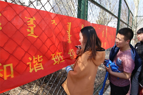 活动上,大家先在主题条幅上签字,接着开展了小组排球对抗赛、踢毽比赛、解手环等户外团队活动。哈斯、都拉拉等参赛同学获得比赛纪念奖,并得到专业方面的精美书籍作为奖励。