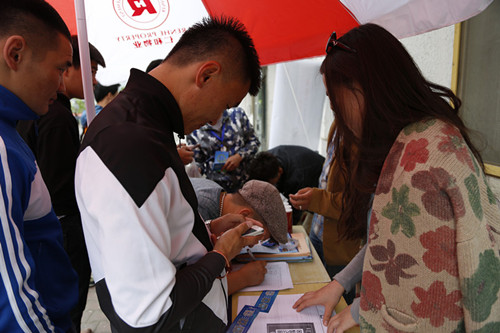 同学们看到了蒙语新媒体宣传活动条幅后纷纷前来参加,大家扫了二维码关注了微信公众平台,还预定了手机报并且就自己喜欢的网站及喜欢的内容与记者进行了交流。在短短的时间里有500多名学生参加了本次活动,有360名同学现场关注了微信公众平台。
