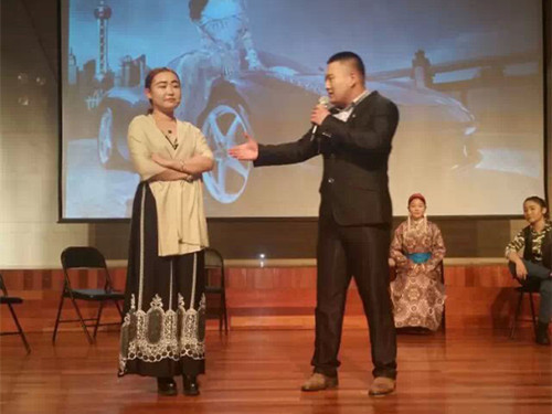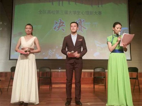 传媒系心理剧《相亲》参加 全区高校第三届大学生心理剧大赛获优秀奖 2014年12月5日,我系心理剧《相亲》代表学院参加了由内蒙古自治区教育厅主办、内蒙古师范大学承办的全区高校第三届大学生心理剧大赛并获得优秀奖,本次大赛分为蒙汉两组,来自全区的30个剧目参加了比赛。 参赛的心理剧《相亲》为原创作品,由齐丹老师指导,奈日格勒、阿尔希尼玛、海日、布特格其、哈布尔、萨日盖,阿拉唐珠拉等七名同学参演。 本剧通过大学生相亲故事,反映了不同大学生的心理性格,以幽默诙谐的表演形式呼吁大学生树立正确的恋爱观。