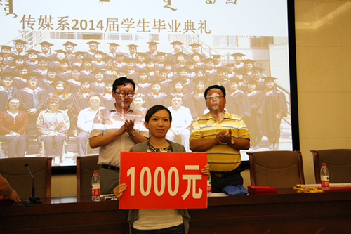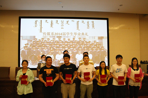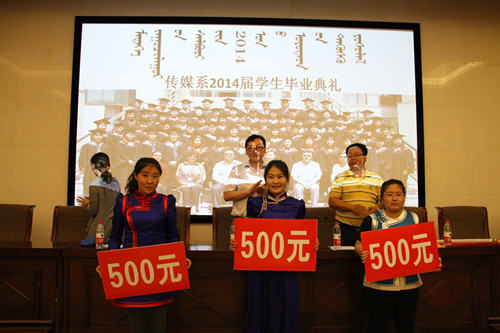 传媒系2014届毕业生在过去四年中勤奋学习、顽强拼搏、奋发成才,涌现出一批综合素质优秀和考研取得成功的毕业生。按照德、智、体全面发展的原则,共评选出宝日玛等10位同学为“优秀实习生”,阿日德娜等10位同学为“优秀毕业生”。同时,2014届本科毕业生在今年研究生考试中表现突出,成绩喜人,其中萨如拉同学被内蒙古大学蒙学院录取、牧兰同学被内蒙古师范大学蒙学院录取、李英同学被东北大学文法学院录取。传媒系决定对“优秀实习生”、“优秀毕业生”和考取硕士研究生的同学予以表彰,并对“优秀实习生”、“优秀毕业生”颁发荣誉证书以资鼓励,考取硕士研究生的同学每人奖励500元,班主任奖励1000元。