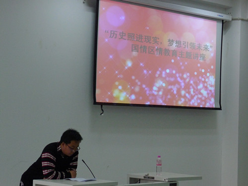 传媒系举办“历史照进现实 梦想引领未来”国情区情教育主题讲座 2014年5月31日晚7点,传媒系党总支书记常喜为全体党员和学生干部作了“历史照进现实梦想引领未来”国情区情教育主题讲座。 常书记以国情为切入点,以内蒙古自治区区情为重点为同学们作了翔实生动的讲座。讲座内容涵盖内蒙古历史、行政区划、地理环境、资源、人口民族、交通运输、文化艺术等内容。 通过此次活动,同学们的爱国情怀倍增,树立了努力学习报效祖国的信心。