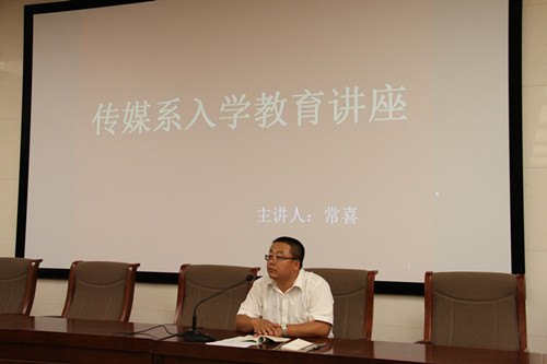 在本次入学教育中的专业思想教育板块,传媒系共安排了5场讲座,其中包括图书馆参考咨询部主任包桂英作的使用图书馆主题讲座、系主任额尔敦毕力格作的学籍管理主题讲座,新闻学教研室副主任乌兰图雅作的新闻学专业思想教育讲座、播音与主持艺术教研室副主任乌日根珠拉作的播音专业思想教育讲座、摄影摄像教研室副主任安迎春作的摄影专业思想教育讲座。