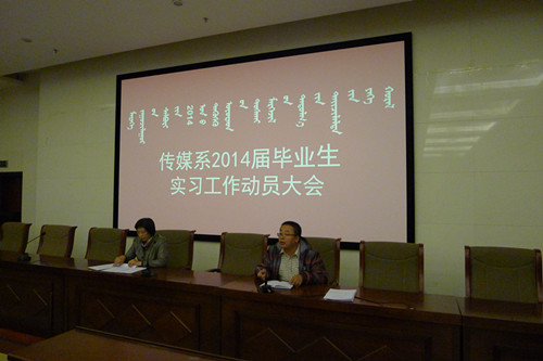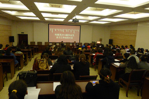 2013年11月1日,在图书馆一楼报告厅隆重召开了传媒系2014届毕业生实习工作动员大会。系主任、党总支副书记、2014届班主任及全体毕业生参加了此次大会。