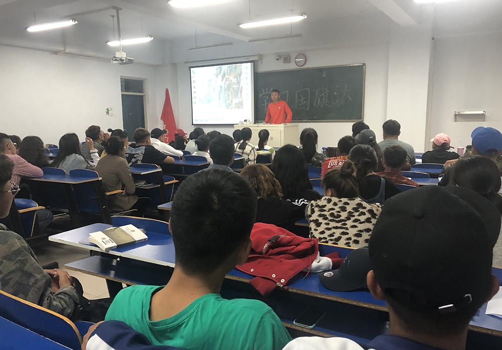 我院团总支书记、辅导员、班主任以观看天安门升国旗、阅兵式重大活动视频、上主题团课、开展升国旗仪式等多种形式,带领广大青年深入学习了《国旗法》,对要认真执行升挂国旗制度,不随意插挂、摆设国旗,不得升挂破损、污损、褪色或者不合规格的国旗等国旗法的基本内容作了深入讲解,使同学们进一步增强了自觉遵守国旗法,维护国旗尊严的爱国主义意识。