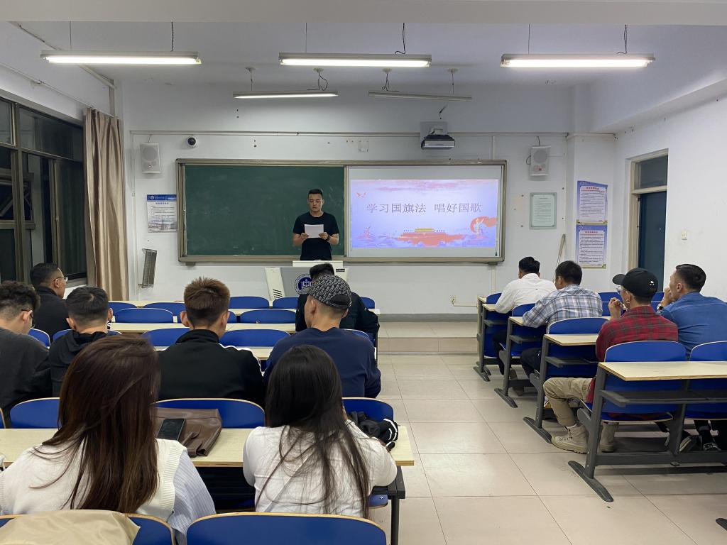 9月27日19时,新闻传媒学院在都林楼503教室开展了“学好国旗法,唱好国歌”的主题学习活动,辅导员苏日巴特老师携2019级学生参加活动。