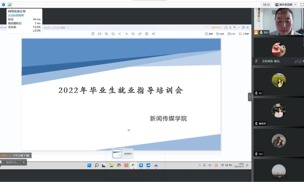 为让2022届毕业生更加了解当前就业形势,帮助同学们树立正确的就业观、择业观,6月15日晚七点,新闻传媒学院通过线上形式为2018级学生举行就业指导主题会议。会议由旭日老师主持,2018级全体毕业生参加。