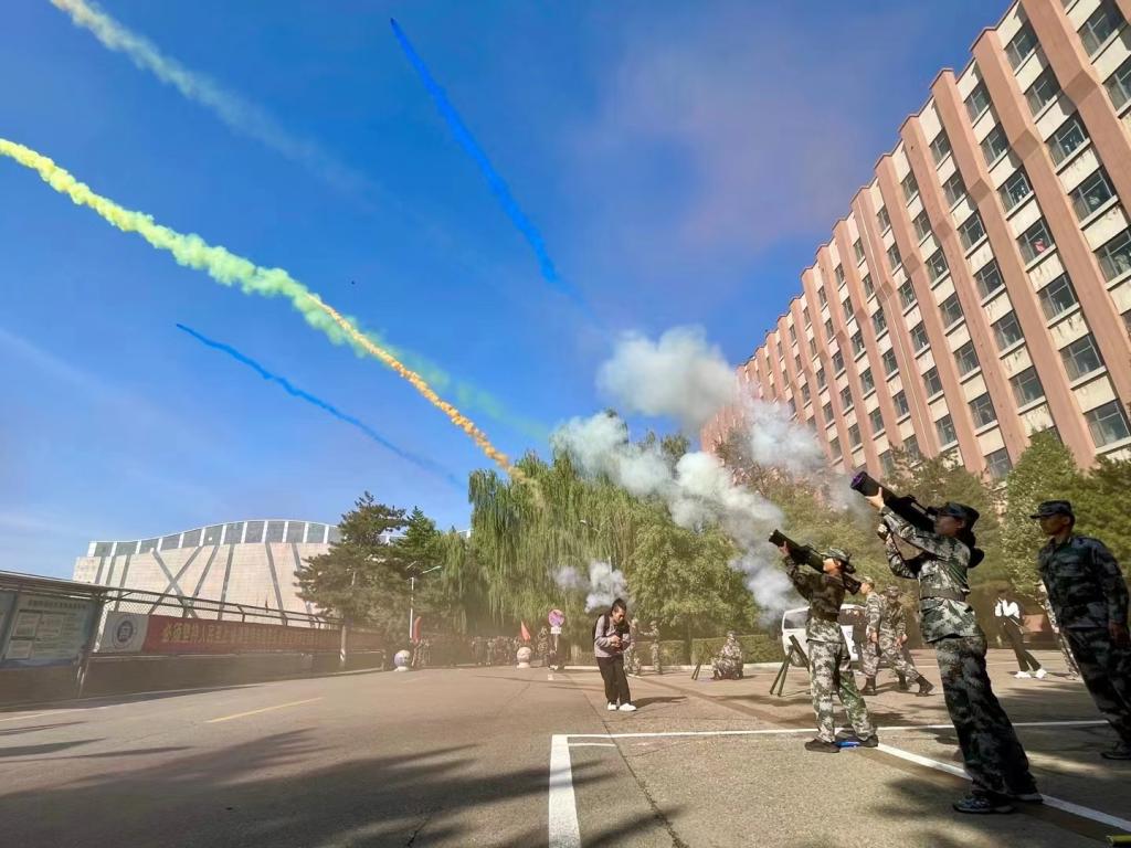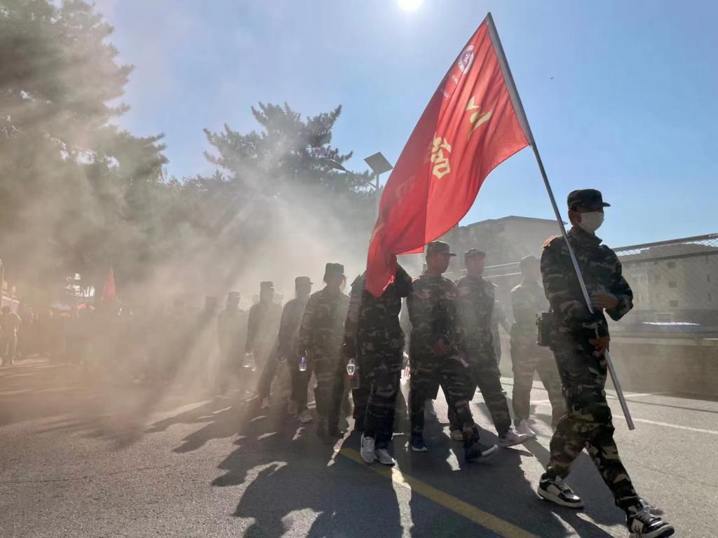 2023年9月16日上午8时,历经1小时新生来到了内蒙古革命烈士陵园。在革命烈士陵园里,他们在战术训练环节,穿越染毒区,按照教官的指令迅速卧倒、躲避,展现了冷静应对危险的能力。