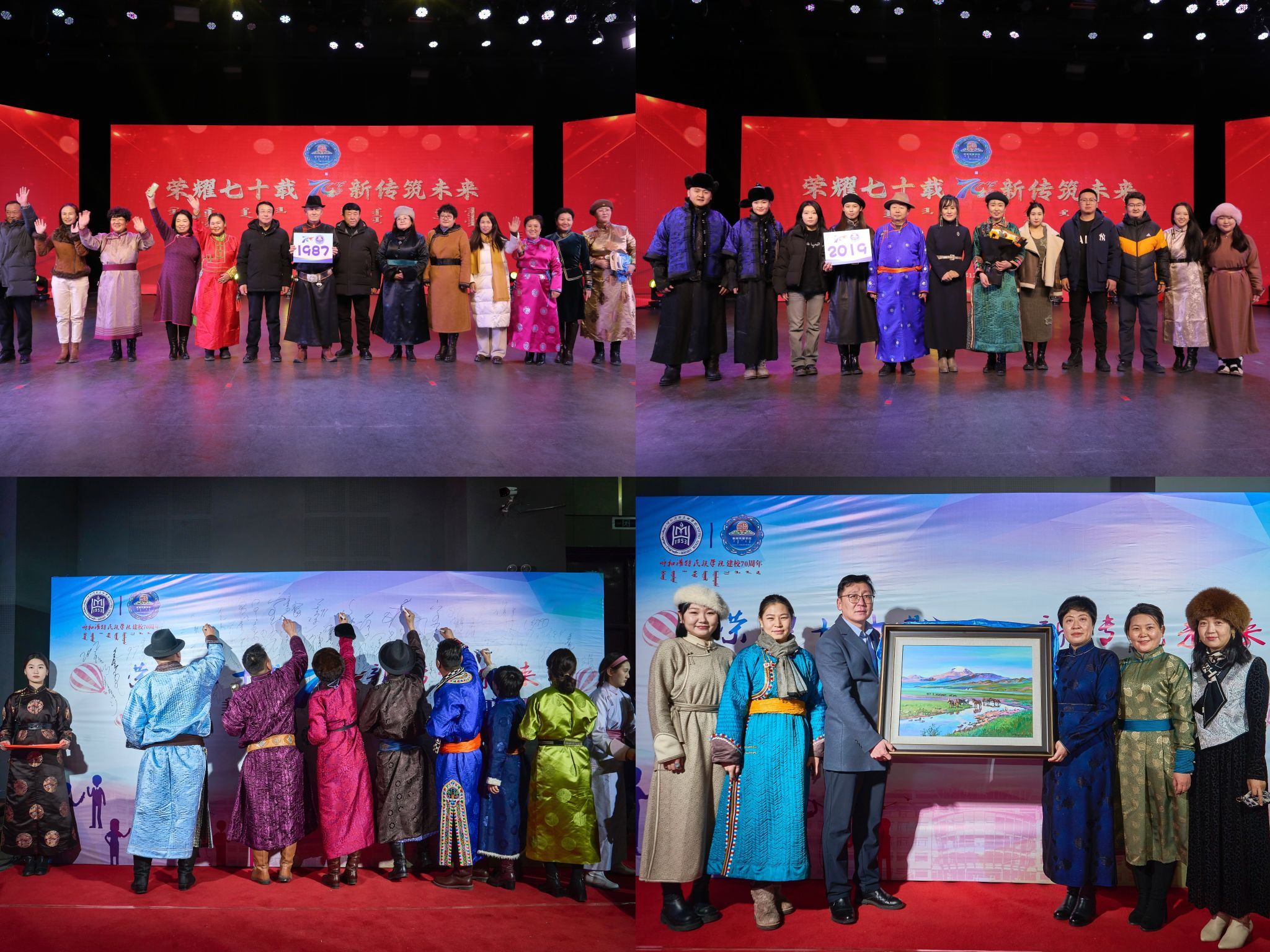 基于巴拉吉、哈申其木格、敖日布、莫照日格图、魏秀兰五位荣休教师对学院的付出与帮扶,以及在新闻教育事业上的卓越贡献,特向他们献上“功勋荣誉教师”证书。