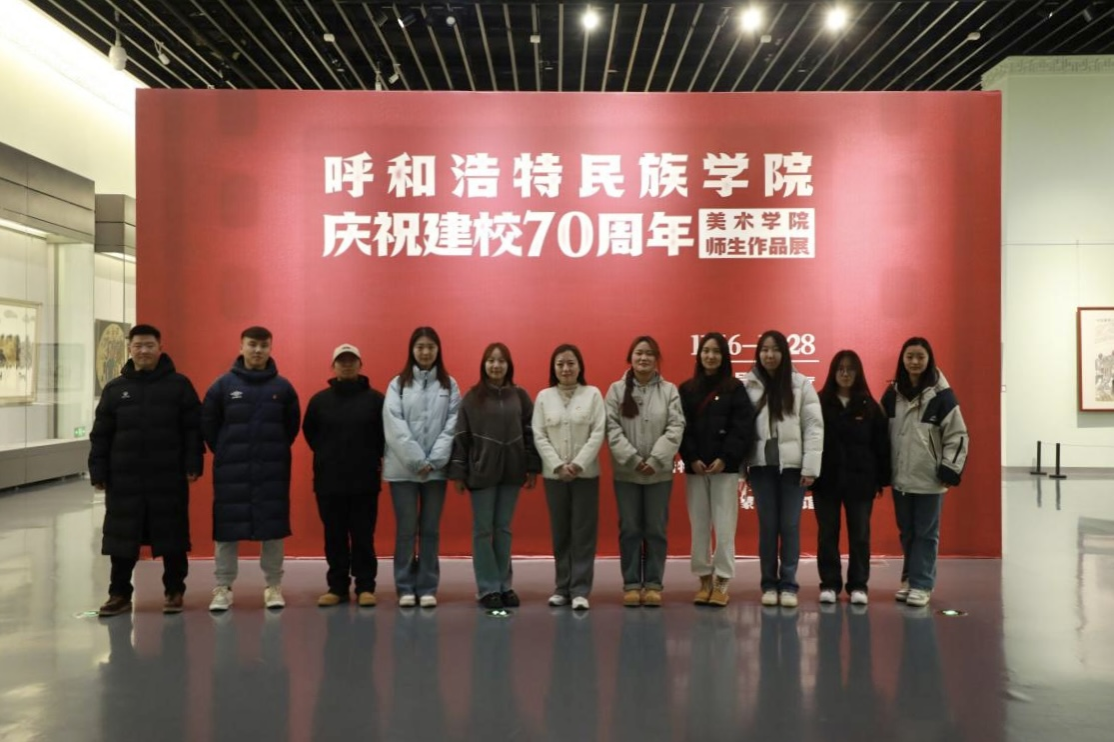 此次活动师生们来到内蒙古美术馆,参观了“周鹏飞毛体书法大展”以及“365英国上市公司‘庆祝建校70周年’美术学院师生作品展”。