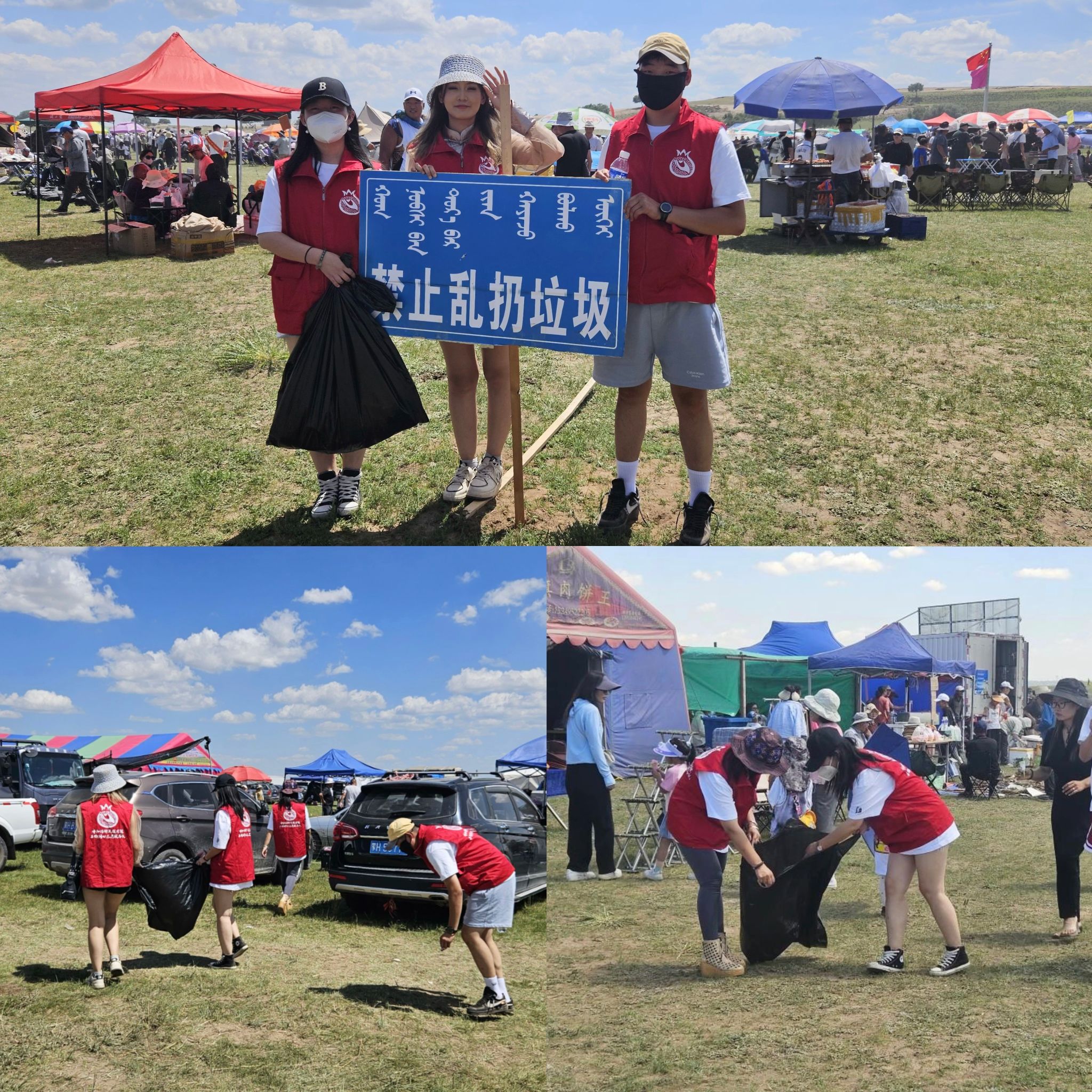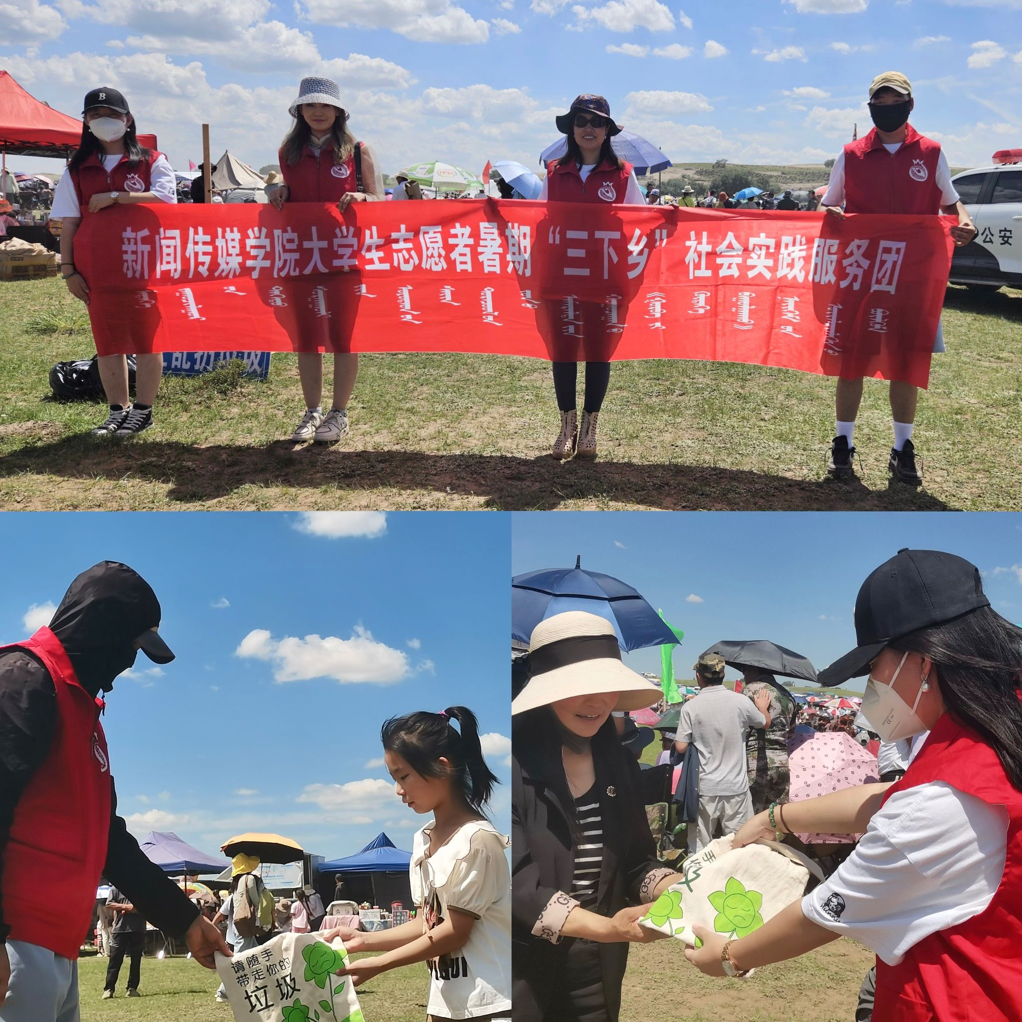 8月6日,新闻传媒学院大学生志愿者暑期“三下乡”社会实践服务团二队积极投身于正蓝旗农牧民那达慕环保行动之中,为环保事业贡献自己的力量。