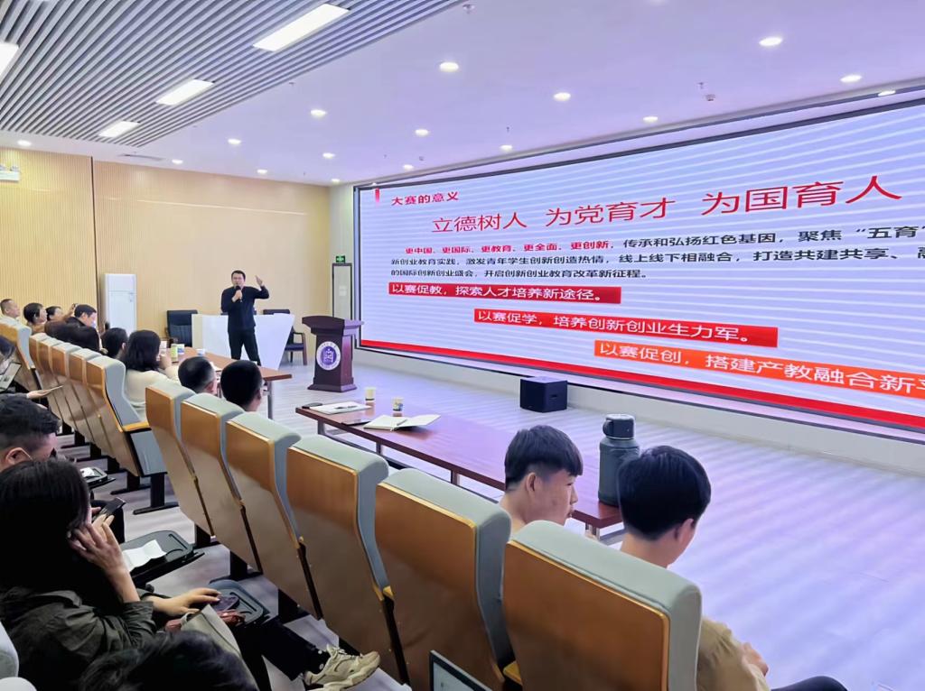 培训会上,郑科宇老师从大赛背景、大赛价值、大赛意义、政策变化、往届大赛回顾等方面进行了解读,并围绕“互联网+”大赛的要求、赛制、赛规、赛道、流程及评审规则,进行赛事备赛策略分析的基础上以在国赛中夺得金银铜奖的实际案例进行经验分享,同时对如何办好校级选拔,如何选拔参赛项目,系统打造参赛项目,优质项目从何而来,参赛材料准备等方面提出了合理建议。培训讲解结束后,郑老师为师生在备赛、项目打造打磨中产生的实际问题等进行了现场解疑答惑。