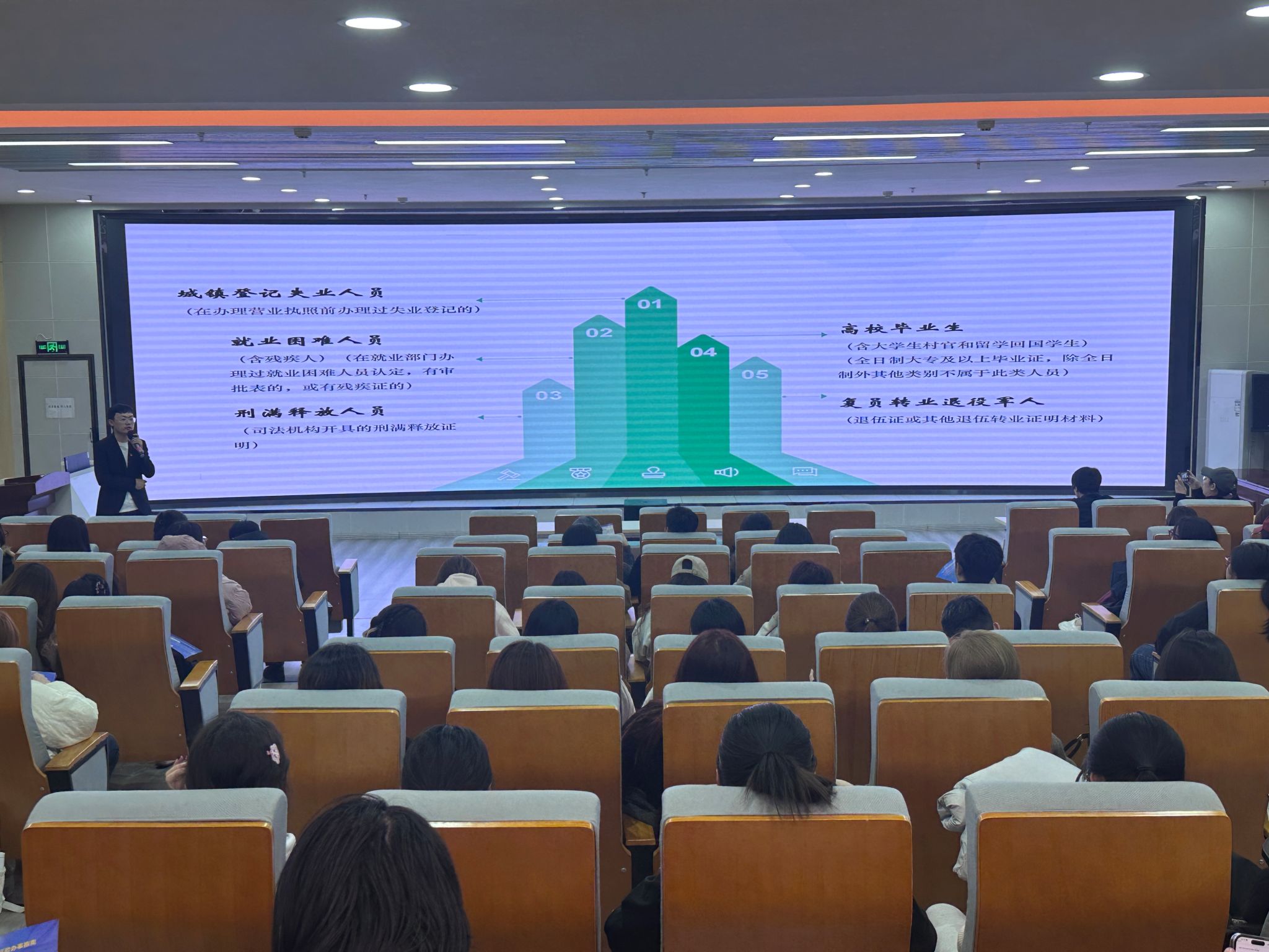 呼和浩特市新城区人力资源与保障局就业服务中心讲师杨海龙围绕个人创业担保贷款政策、一次性创业补贴政策、高校毕业生租购房补贴、就业重点人群培训补贴政策、人才储备政策及青年见习计划等6个方面做了精准细致的政策解读和创业指导。并解答了学生关心的各项优惠政策。