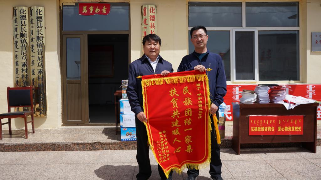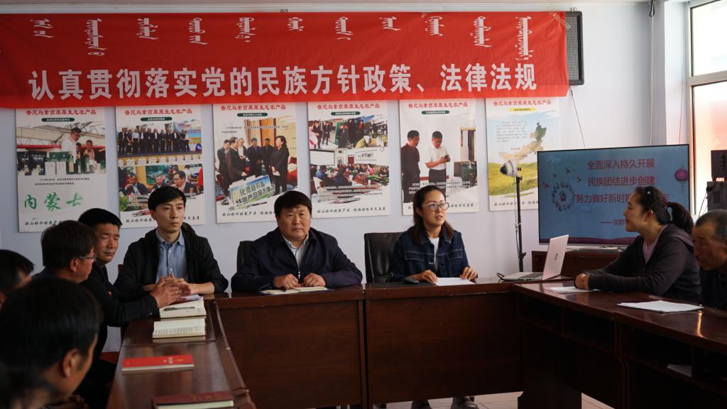 为切实做好维护民族团结的思想引领,促进各民族间交往、交流、交融,不断铸牢中华民族共同体意识,不断开创校内外各民族共同团结奋斗、共同繁荣发展的局面,2020年5月28日,正值“民族法制宣传周”,在365英国上市公司党委委员、统战部部长包君的带领下,统战部、法学院、计算机学院一行10人深入定点帮扶的化德县昔尼乌素村开展了“民族法制宣传周”进基层活动。本次活动得到化德县县委、县政府的高度重视,化德县县委副书记、政法委书记白俊伟、长顺镇镇长武治宇、化德县民族局局长宝国宏、化德县政府办公室副主任梁燕昆、长顺镇副镇长杨春光、化德县民族局副局长和希格陪同全程开展活动,化德县电视台全程报道。