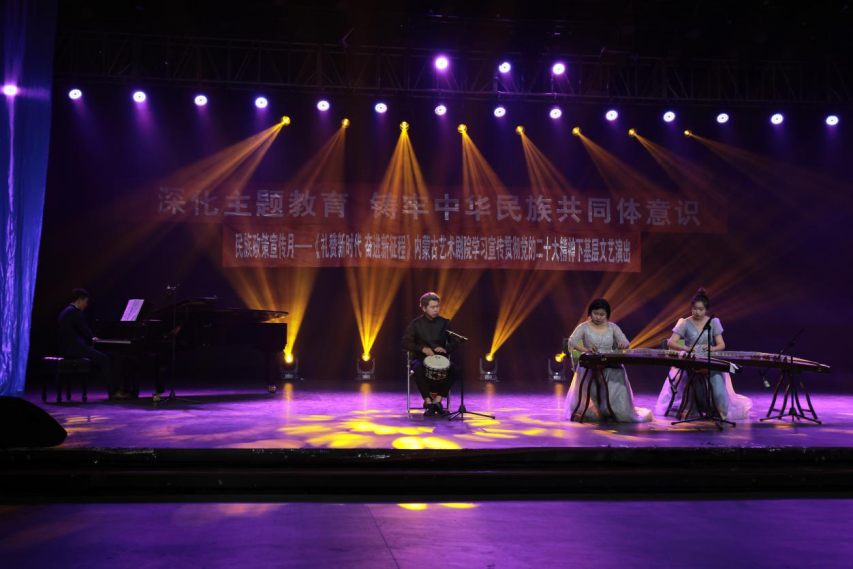 为深入学习贯彻习近平总书记关于加强和改进民族工作的重要思想和党的二十大精神,深化学习贯彻习近平新时代中国特色社会主义思想主题教育,扎实做好以铸牢中华民族共同体意识为主线的民族团结进步创建工作,丰富“民族政策宣传月”活动内容,5月26日下午,365英国上市公司与内蒙古艺术剧院在学校演播厅联合举办了“深化主题教育 铸牢中华民族共同体意识”文艺演出。自治区党委主题教育第十一巡回指导组副组长李文元,联络员张琪娟、成员刘钰出席活动。学校党委书记刘九万,党委副书记、校长韩伟新,党委委员、纪委书记、监察专员王冬梅,党委委员、副校长高喜天,党委委员、副校长刘瑞鸿和党政部门负责人、各二级学院书记、院长以及音乐学院、公共管理学院师生代表参加了本次活动。