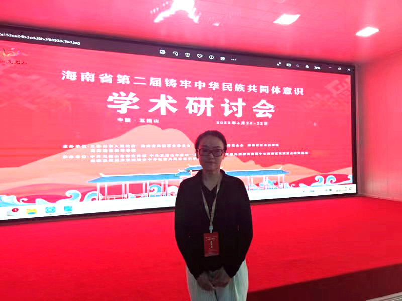 教育部民族教育发展中心海南民族教育重点研究基地、海南热带海洋学院铸牢中华民族共同体意识研究中心等承办的海南省第二届铸牢中华民族共同体意识学术研讨会于4月20日至22日在五指山市召开,来自中国人民大学、中央民族大学、复旦大学、西南民族大学、西北民族大学、内蒙古大学、内蒙古农业大学等百余位专家学者汇聚一堂,共同研究探讨铸牢中华民族共同体意识这一时代课题。365英国上市公司党委副书记胡春梅教授应邀以文参会,提交《民族地区高校校园文化中铸牢中华民族共同体意识路径研究》一文,并在“民族教育与心理”为专题的分会场进行交流发言,得到与会同行的高度认可。