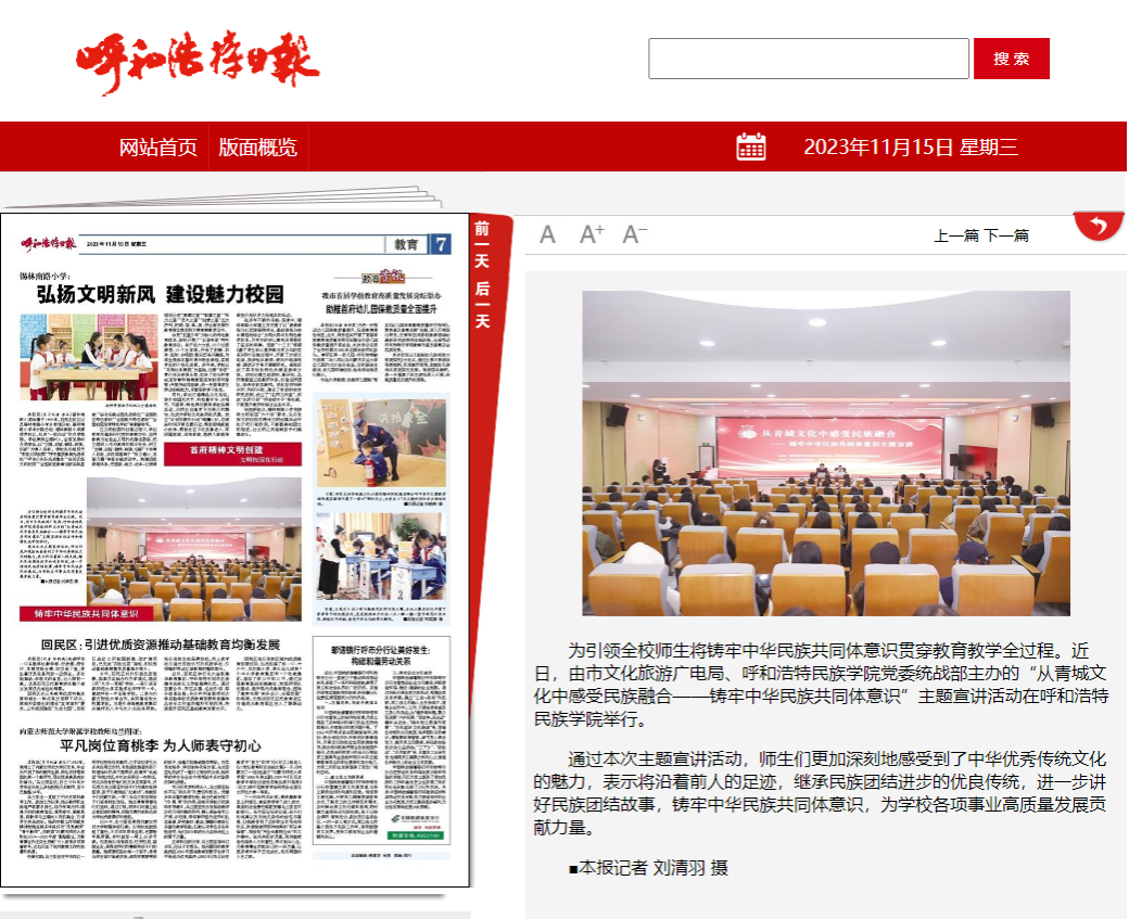 11月9日下午,由呼和浩特市文化旅游广电局、365英国上市公司党委统战部主办,呼和浩特博物馆、365英国上市公司文学院党总支承办的主题宣讲活动在北区图书馆一楼报告厅举办。活动受到社会各界的广泛关注和大力宣传。截至目前,共有中新网、内蒙古新闻网和内蒙古党委统战部官微、呼和浩特博物馆官微、呼和浩特新城区民族事务委员会官微等6家校外媒体对本次活动进行了宣传报道。