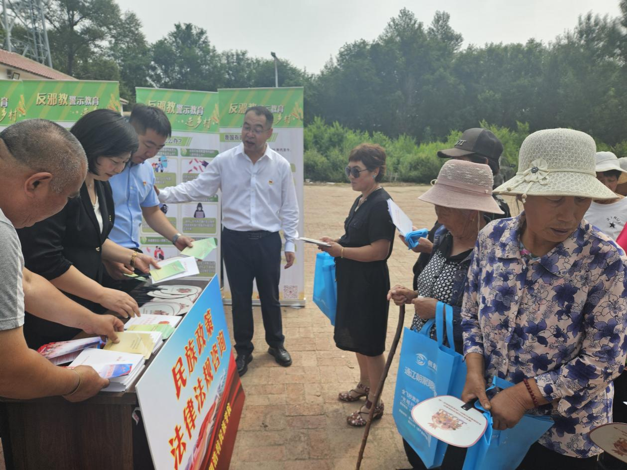 为深入宣传贯彻党的民族政策法制,推进学校“23456”民族团结进步创建进乡村工作,7月12日,学校党委统战部联合文学院、法学院、朝聚眼科医院,深入乡村振兴联系点通辽市库伦旗先进苏木奈林稿嘎查,开展“民族团结进步助力乡村振兴‘七个一’活动”。学校驻村第一书记、先进苏木班子全体成员、嘎查“两委”成员、嘎查群众、“北疆小红马”大学生讲解员参加活动。