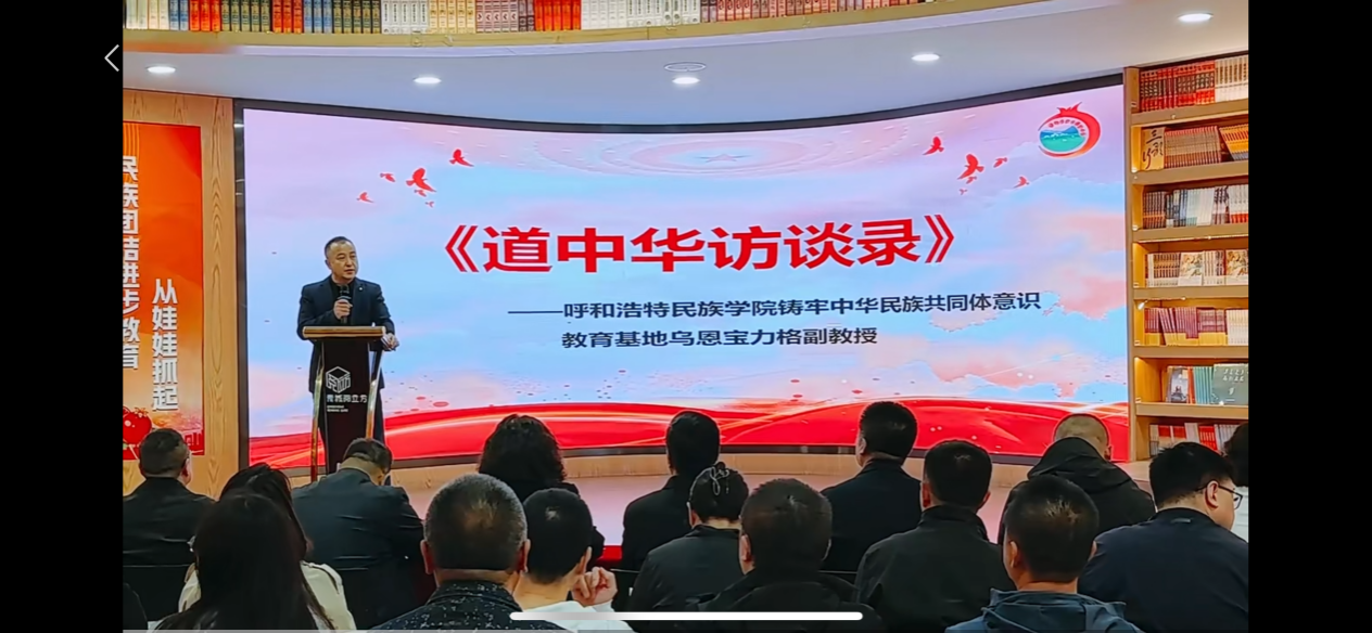 活动中,乌恩宝力格副教授、崔佳琦分别作为自治区铸牢中华民族共同体意识研究基地的专家代表和青年学生代表,分享了《道中华访谈录》《道中华文萃》等书籍的节选内容。