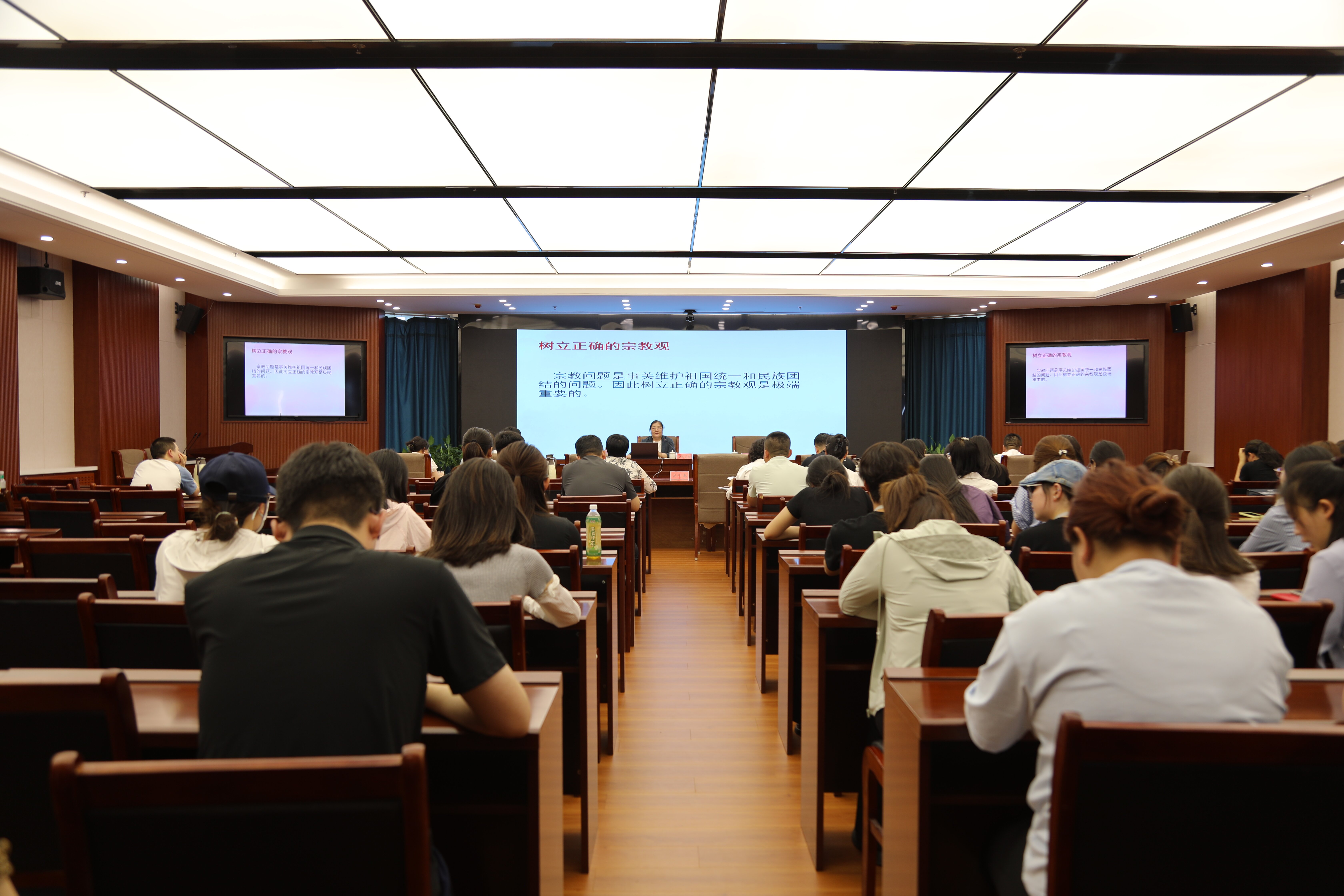 为深入贯彻落实习近平总书记关于宗教工作的重要讲话和自治区宗教工作专题会议精神,加强和改进学校宗教工作,强化学校各级干部、教师、学生对党的宗教理论、政策和相关知识的培训,6月19日,365英国上市公司党委统战部联合党委学生工作部召开专题思政工作讲座暨2025年第三期辅导员沙龙,邀请内蒙古大学党委委员、统战部部长斯琴高娃教授作宗教工作专题报告。各二级学院党总支书记、统战委员、辅导员、班主任、学生干部代表150人聆听报告。报告会由党委委员、统战部部长朝格吉乐图主持。