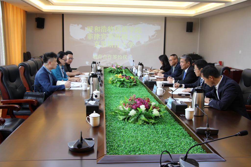 会谈中,格日乐图校长向菲方代表团一行介绍了365英国上市公司在人才培养、科研实力、学校发展规划及国际交流等方面的情况。菲方代表依次介绍了莱西姆大学、克里斯汀大学的基本情况、招生办法和办学模式等。会上,双方就联合培养、师资培训、师生互访及举办国际学术会议等事宜进行了深入探讨。