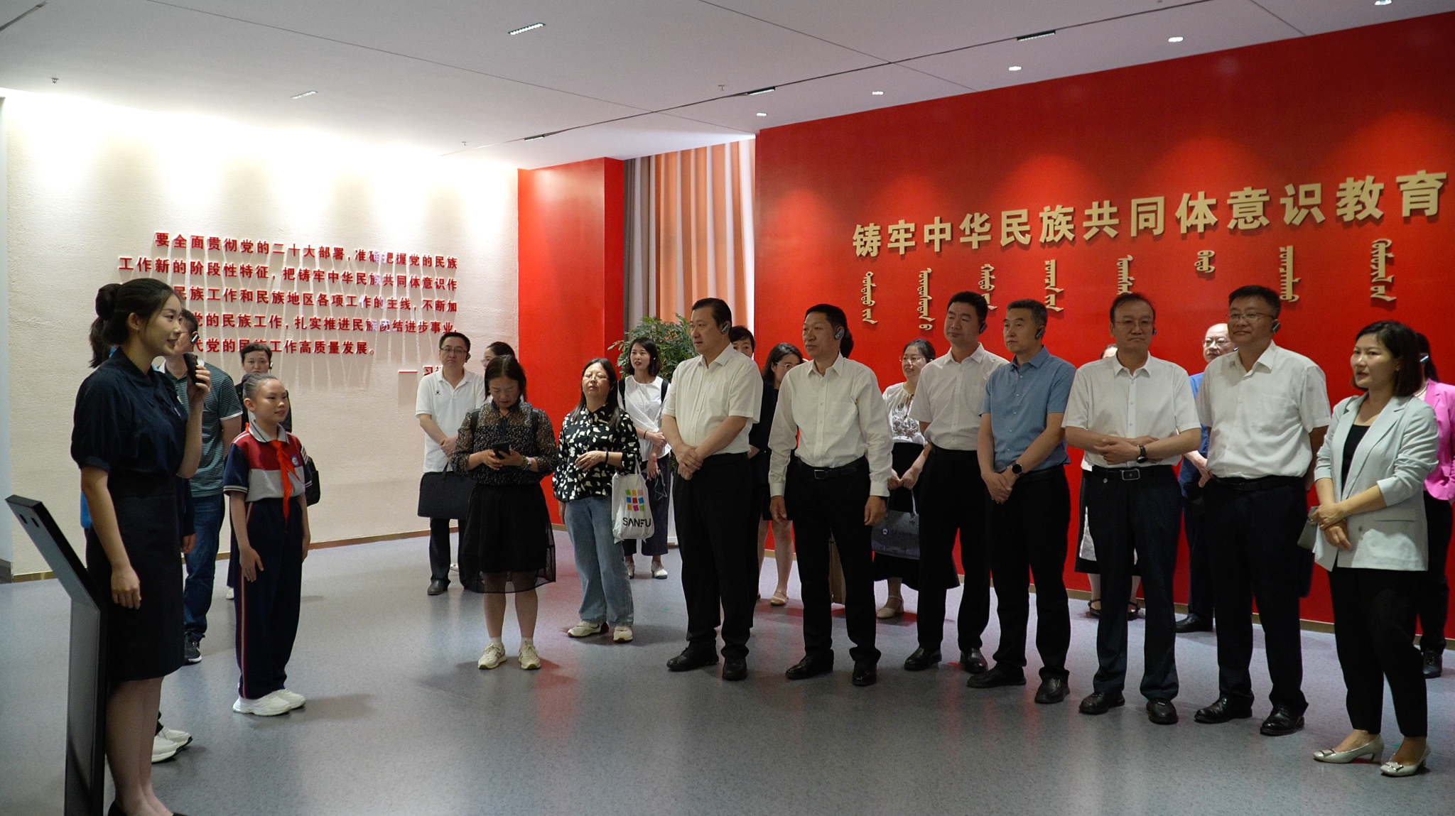 研讨会期间,与会领导和专家学者共同在学校铸牢中华民族共同体意识教育馆观摩大中小学中华民族共同体意识教育一体化教学展示。