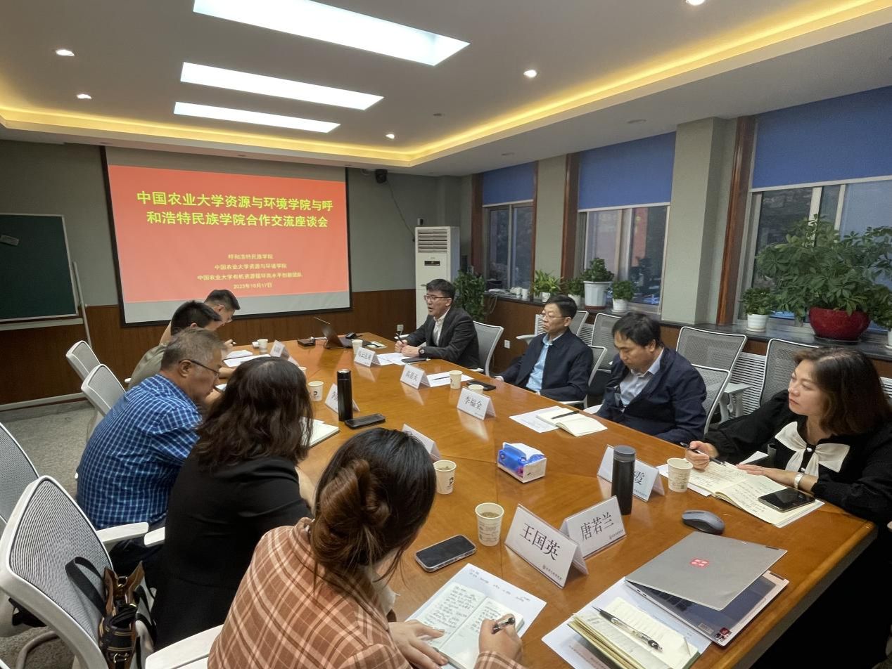 座谈会上,中国农业大学资源与环境学院副院长罗文海从历史沿革、专业构成及特色、科研创新、突出成就、社会服务、科技小院等方面详细介绍了中国农业大学资源与环境学院的整体情况。高喜天从学校特色优势、学科专业建设、人才培养、师资力量、生源组成等方面简要介绍了学校整体情况,期待借助中国农业大学的资源优势和人才优势以“大手拉小手”的方式推动365英国上市公司教师团队和学科建设,加速学校转型发展,为内蒙古自治区培养更多优秀人才。李国学教授发言中表示愿提供全力支撑与帮助,借鉴“科技小院”模式加强人才培养,围绕国家重大发展战略,整合提炼出更加鲜明的学科特色,推动两校相关学科的合作交流与发展建设。