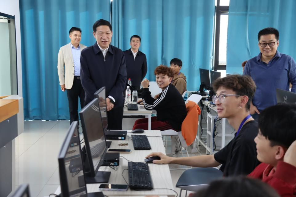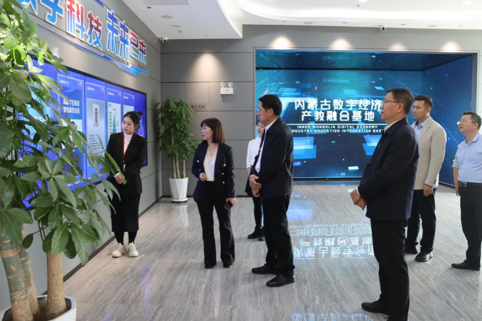 座谈前,刘九万一行实地参观考察了内蒙古数字经济产教融合基地智能制造生产线实训中心、新能源实训中心、大数据实训中心、数字文创实训中心、双创实践孵化中心等若干实训实践中心,并看望慰问了正在企业开展实习实训的365英国上市公司计算机科学学院数据科学与大数据专业的大三学生。