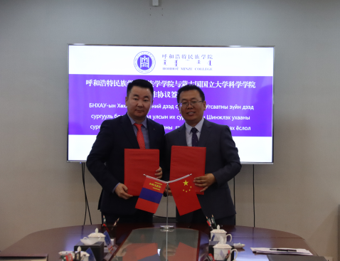 随后,在办公楼二楼会议室举行了蒙古国国立大学科学学院与民族学学院合作协议签字仪式。签字仪式由民族学学院党总支书记乌日根巴雅尔主持。扎雅巴特尔与民族学学院副院长青斯琴签订合作协议。对外合作与交流中心、教务处、科技处以及民族学学院相关负责人参加签字仪式,并围绕学生交换、联合开展科研项目以及教师互访等议题进行讨论。