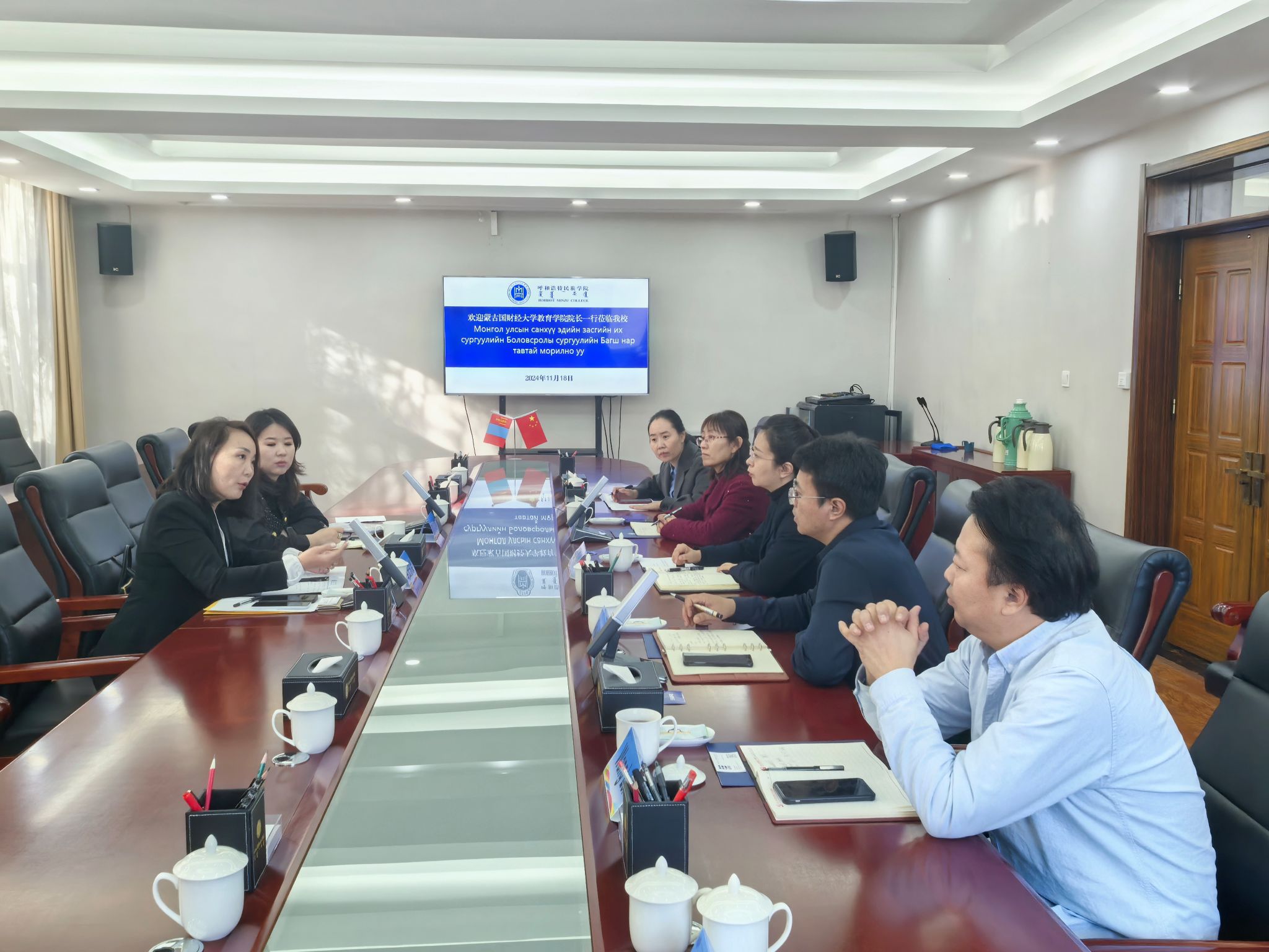 刘瑞鸿对蒙古国财经大学教育学院一行的来访表示热烈欢迎,向其介绍了学校的基本情况,并希望双方在人才培养、教育教学等方面开展深度务实的交流与合作,为师生搭建高层次的对外交流平台。