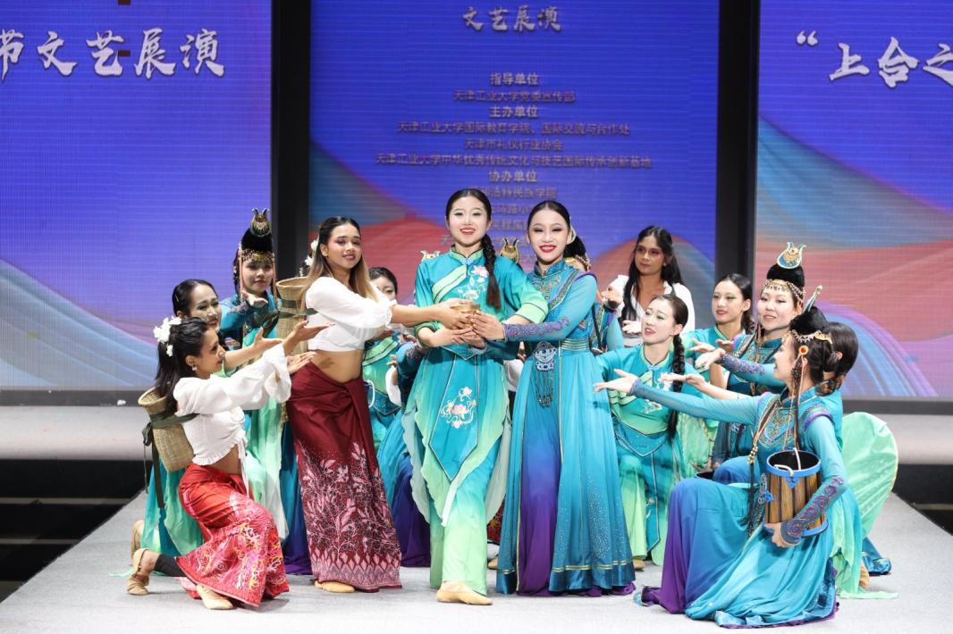 活动现场,天津工业大学中华传统服装服饰研究所推出“行走的文明”华服秀。天津工业大学的多国学子以中文、俄语、英语共同唱响《年轻的朋友来相会》。此次活动展现的不仅是艺术形式的创新,更是文明互鉴基因在青年群体中的自然生长,让中外青年在创作中建立共鸣,让文明互鉴的种子深植于新一代青年学子心中,为构建人类命运共同体注入了青春活力。
