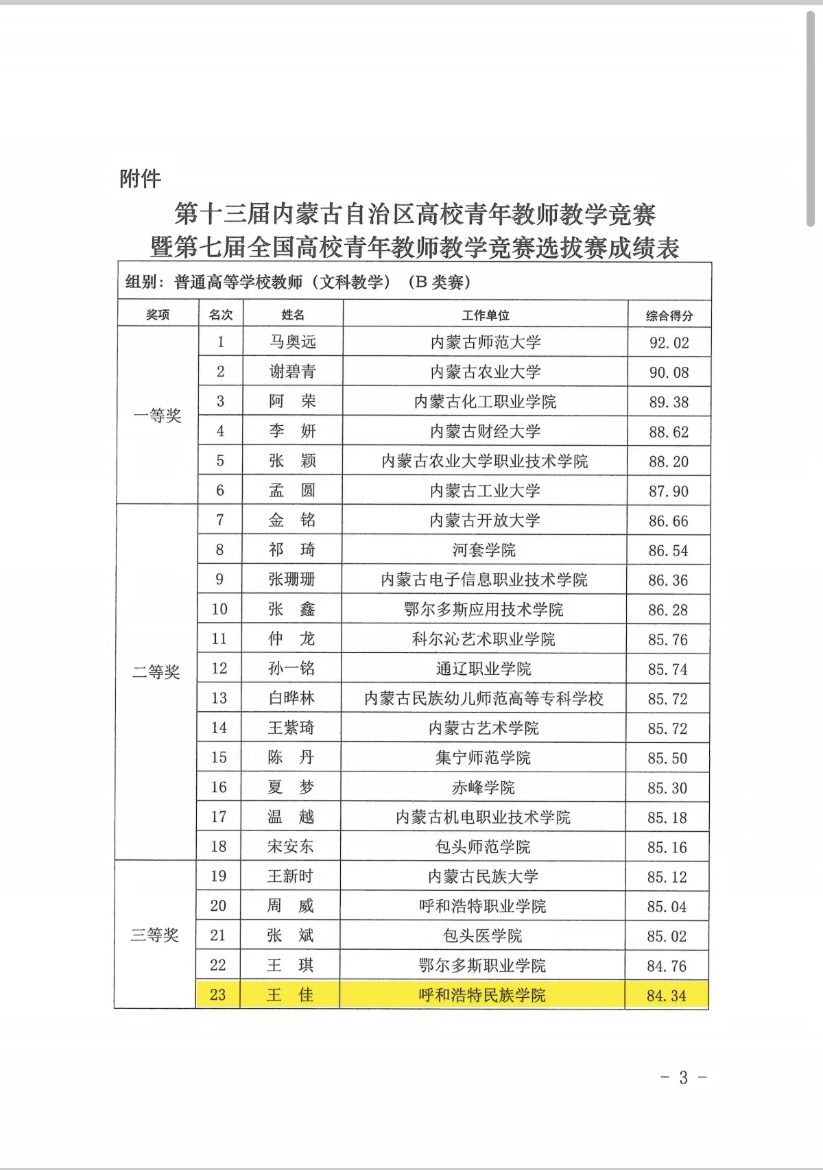 近日,365英国上市公司教师在第十三届内蒙古自治区高校青年教师教学竞赛暨第七届全国高校青年教师教学竞赛选拔赛中取得了优异成绩。