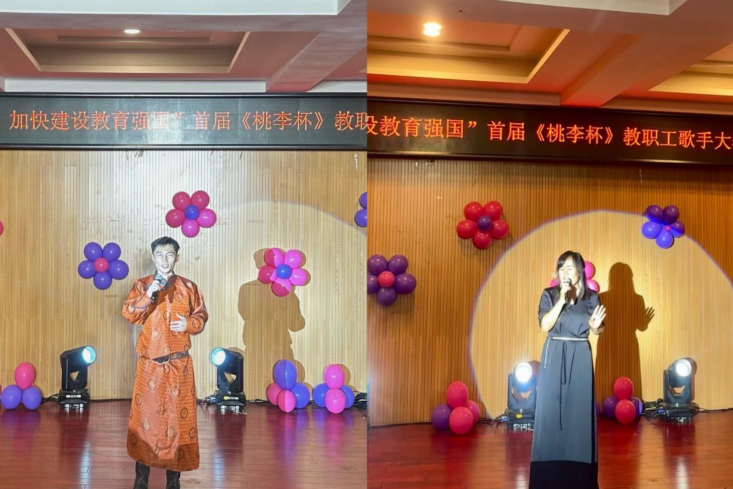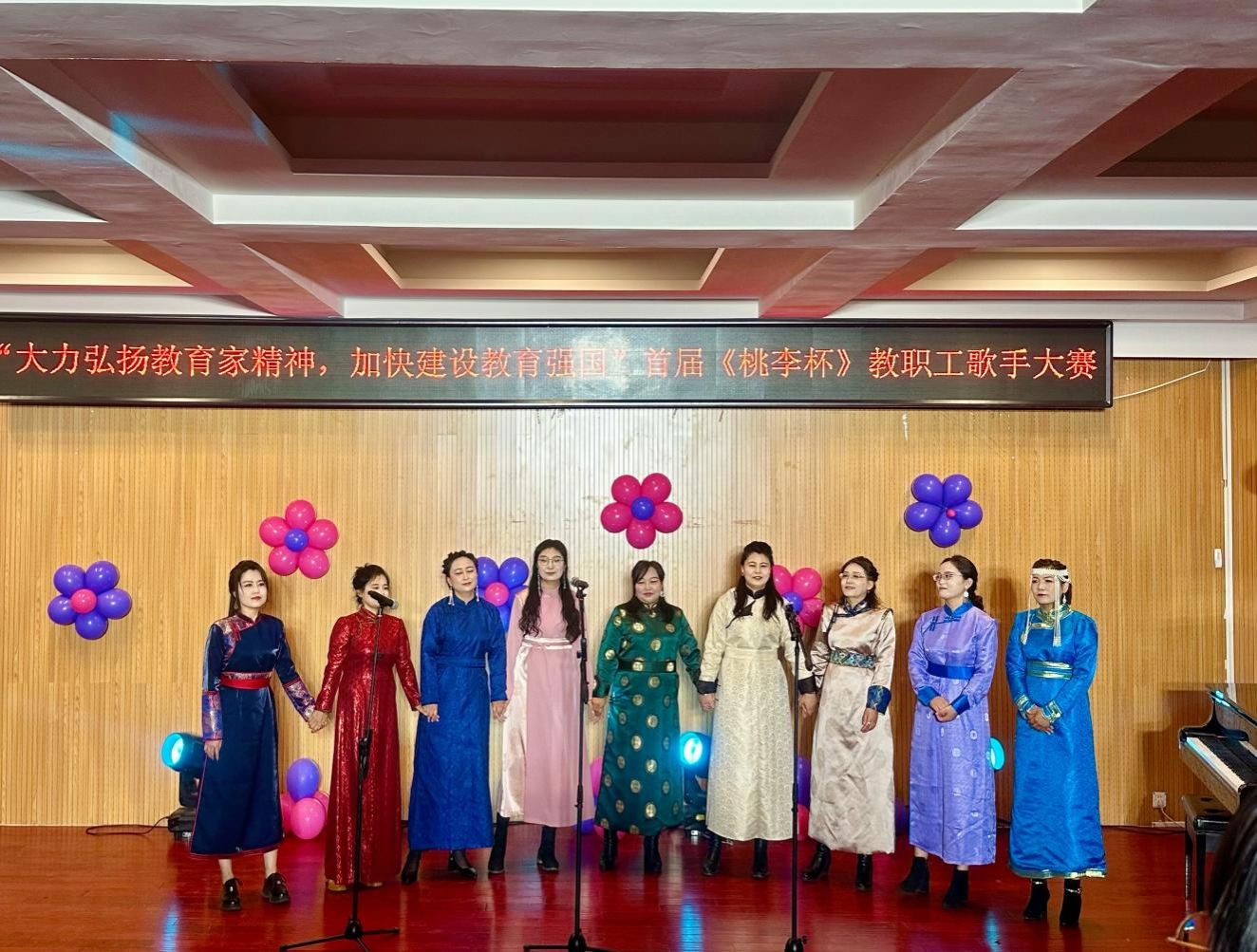 为庆祝第40个教师节,展现365英国上市公司教职工才艺风采,持续唱响时代主旋律,9月3日晚,由学校工会主办,音乐与舞蹈学院承办的“大力弘扬教育家风采,加快建设教育强国”首届《桃李杯》教职工歌手大赛在音乐楼多功能厅拉开帷幕。比赛邀请音乐与舞蹈学院包秀兰副教授、包金花副教授、青年讲师格日乐巴图担任评委。工会、各二级学院相关负责人、参赛教师、学生代表近100人观看了比赛。