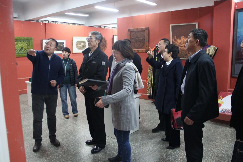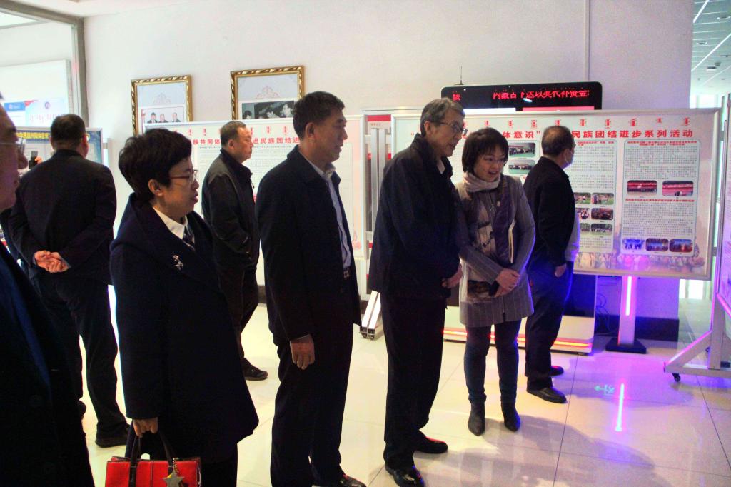 傲木格副主席一行在胡春梅副书记的陪同下一起观看了“铸牢中华民族共同体意识”图片展版,美术学院民族团结进步成果展,到学校体育学院实地体验了民族体育传统项目布鲁、射箭活动。