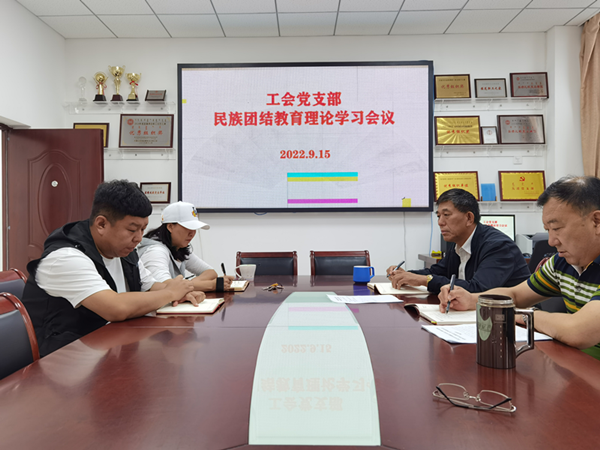 为深入开展民族团结教育、铸牢中华民族共同体意识,9月15日上午,工会党支部在工会会议室召开理论学习会议。会议由党支部书记邢文岐主持。