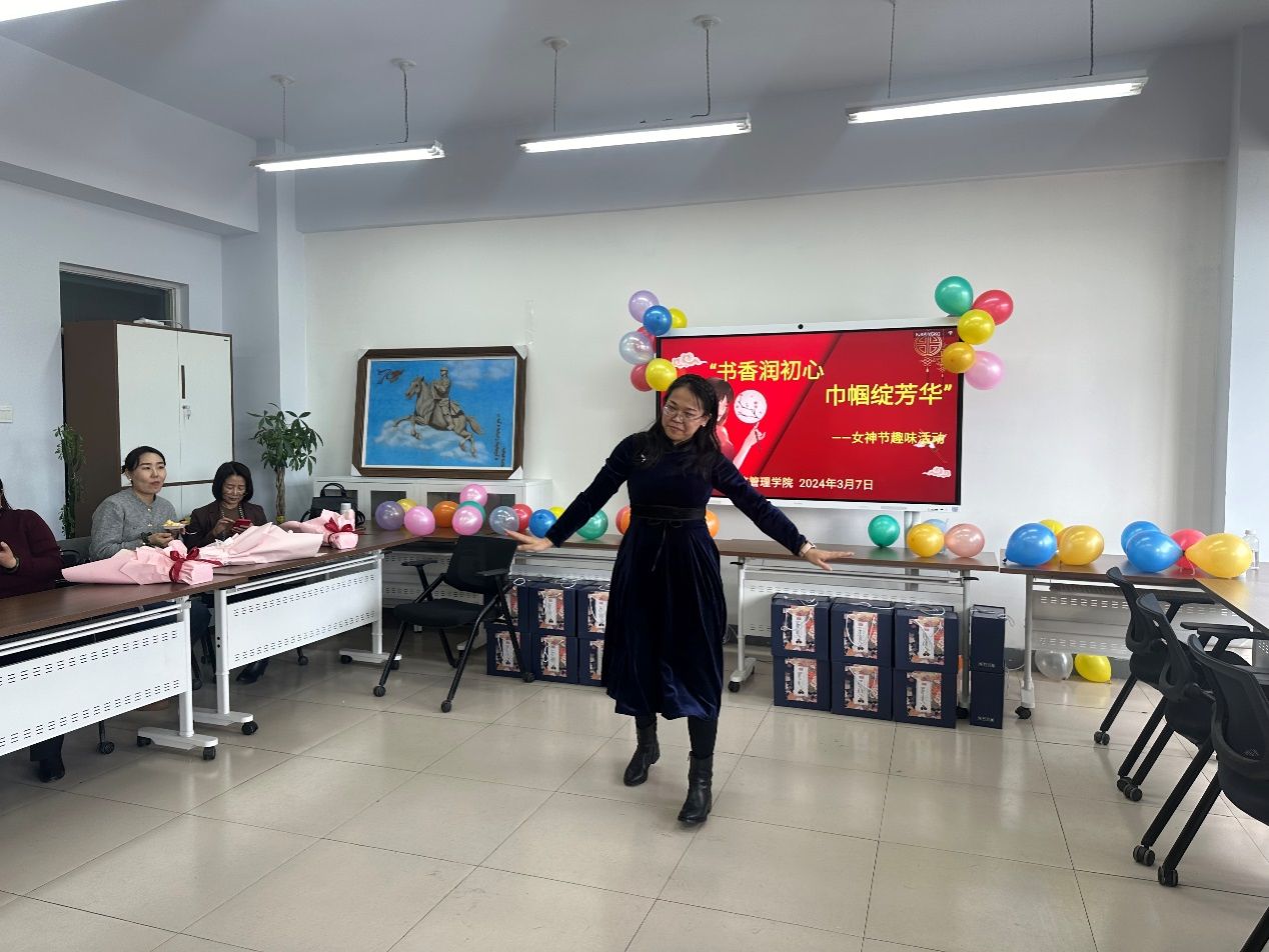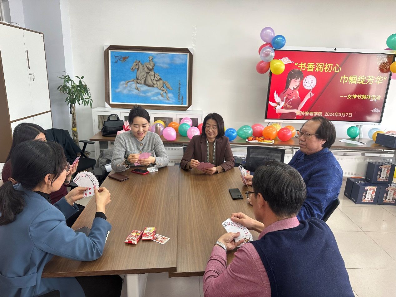 2024年3月7日下午,经济管理学院全体教职工在都林楼205会议室开展“书香润初心,巾帼绽芳华”---经济管理学院女神节趣味活动。