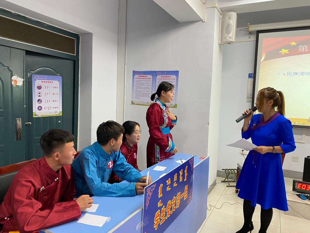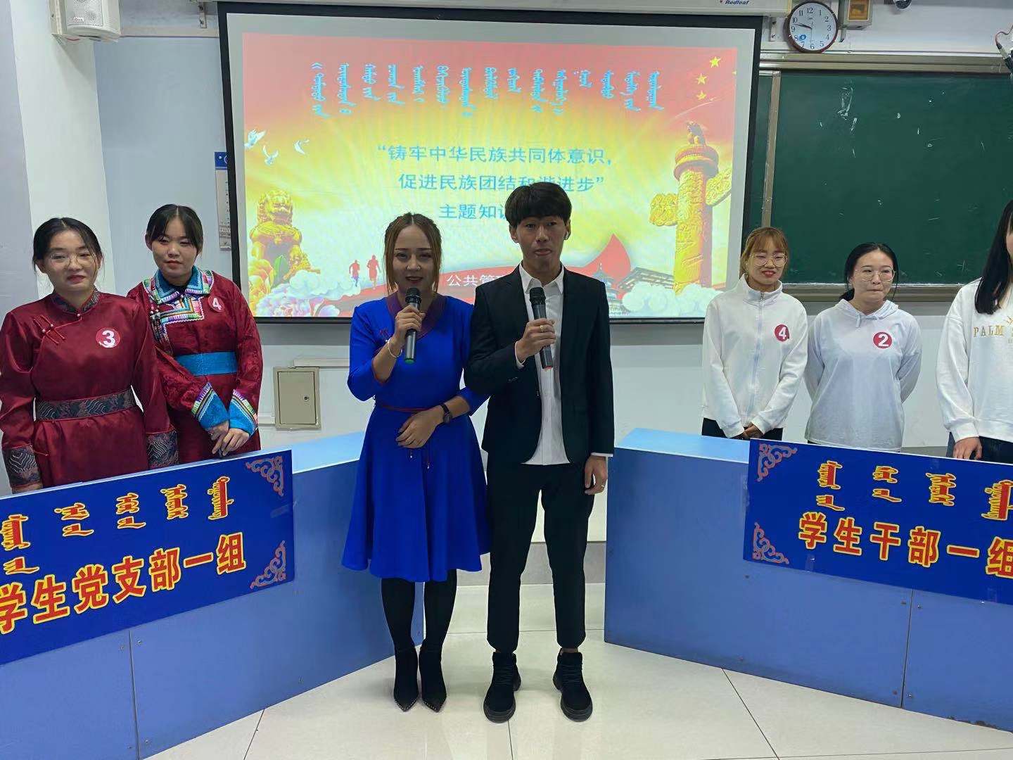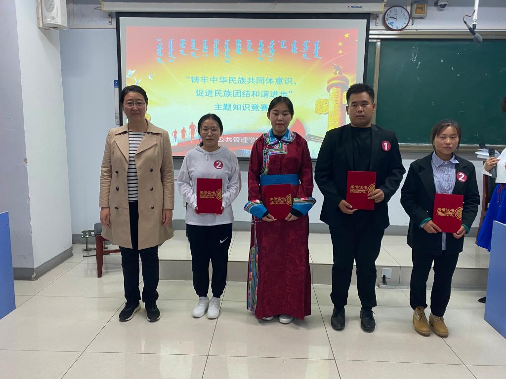 为深入学习贯彻习近平总书记关于民族工作的新理念、新思想、新战略,学习宣传习近平总书记关于民族团结重要论述和对内蒙古重要讲话精神的指示精神,普及民族团结知识,教育引导广大学生争做社会和谐、民族团结的维护者和传播者,9月29日,在祖国母亲71岁生日来临之际,由公共管理学院学生会和学生党支部承办的“铸牢中华民族共同体意识,促进民族团结和谐进步”主题民族团结知识竞赛在都林楼306教室隆重举行,共有4支代表队,16名学生积极参与了此次竞赛。
