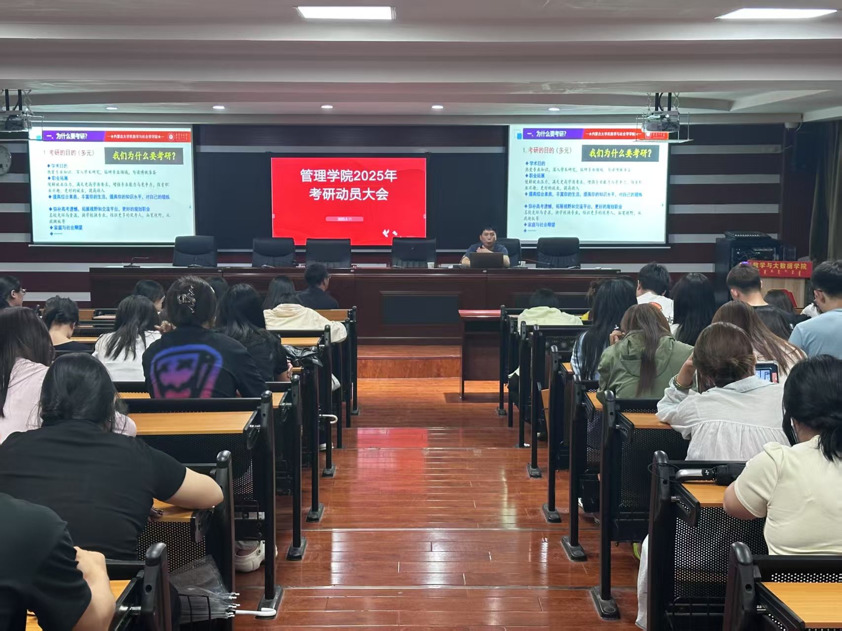 为进一步激发2026届学生考研热情,明晰考研目标,掌握考研技巧,6月11日晚管理学院在尚智楼413学术报告厅,召开2026届考研动员大会,院长哈斯同力嘎主持会议,特邀内蒙古大学民族学与社会学学院杨常宝老师为2026届学生作考研专题讲座,搭建交流平台助力学子开启学术新征程。